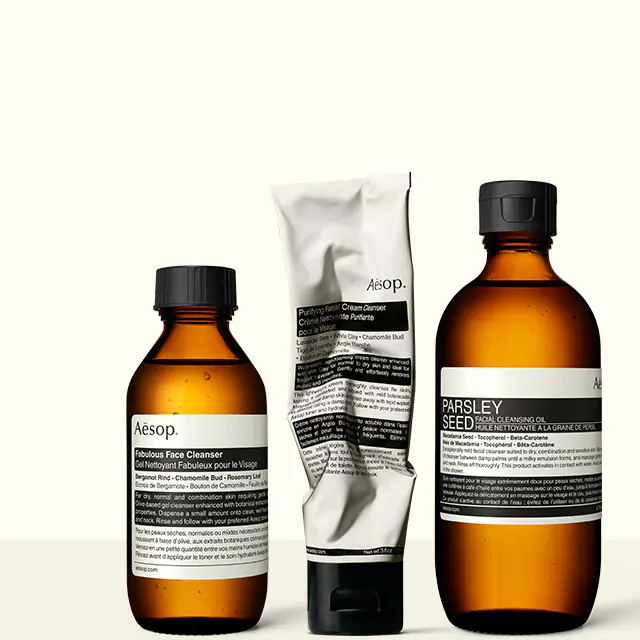 Aesop的潔面產品是精心研發的成果,可滿足各種膚質、護膚習慣和環境的獨特需要。由於肌膚會對氣候條件的改變作出反應,當肌膚的乾燥、出油、堵塞或脫水情況出現變化時,不妨選用針對性產品。